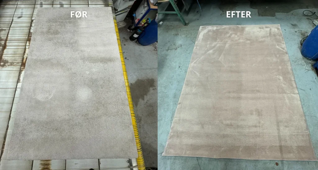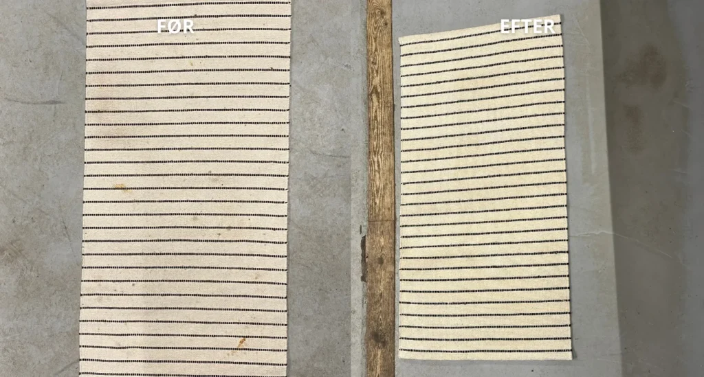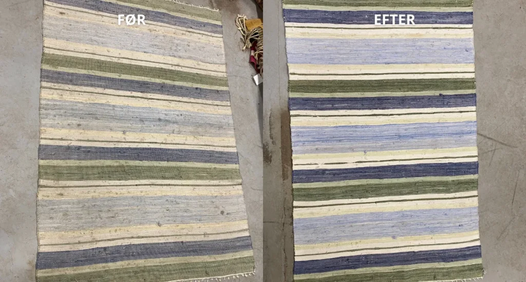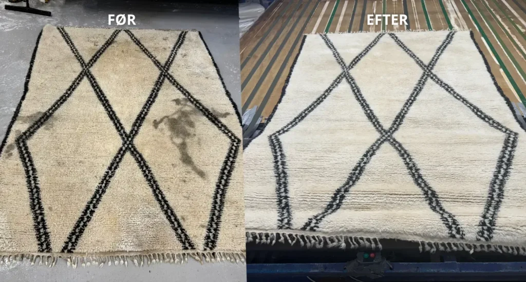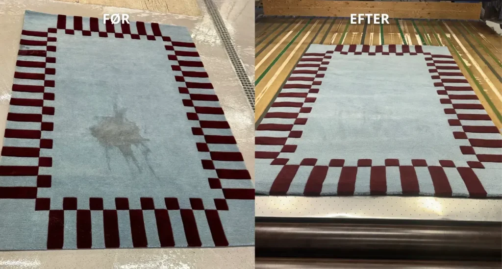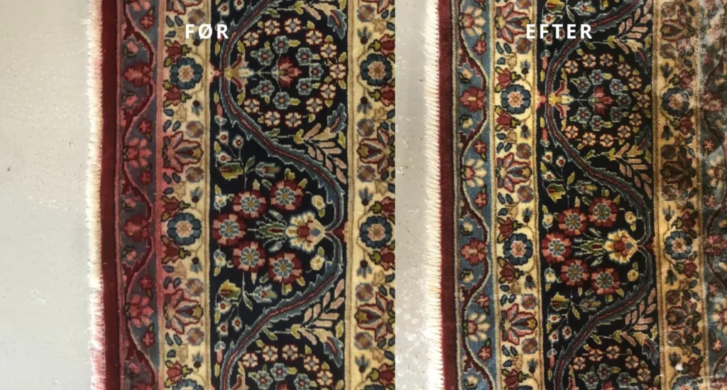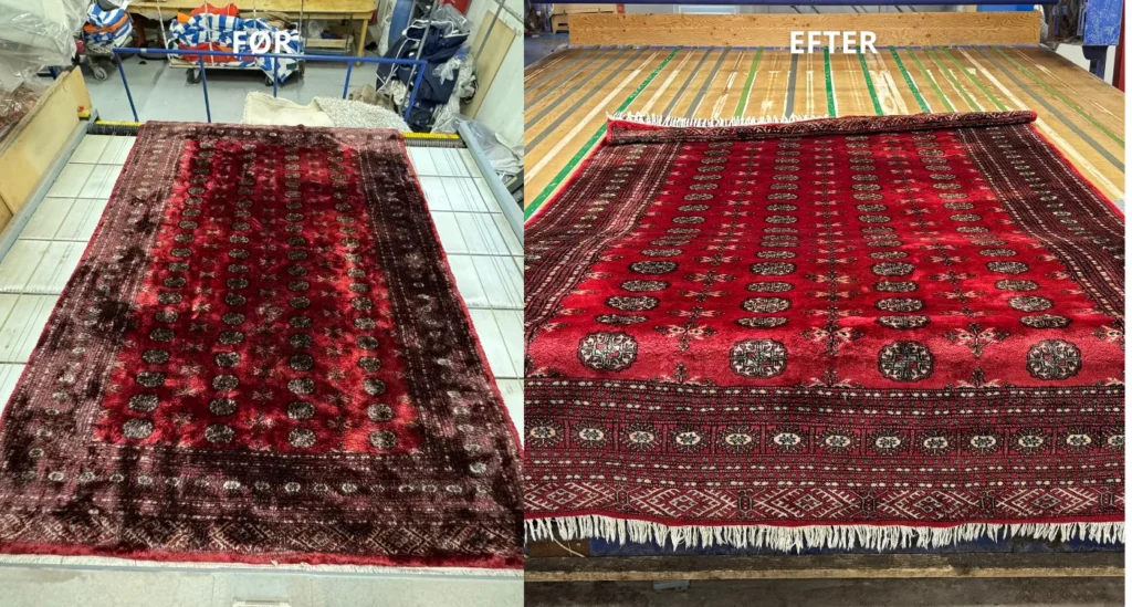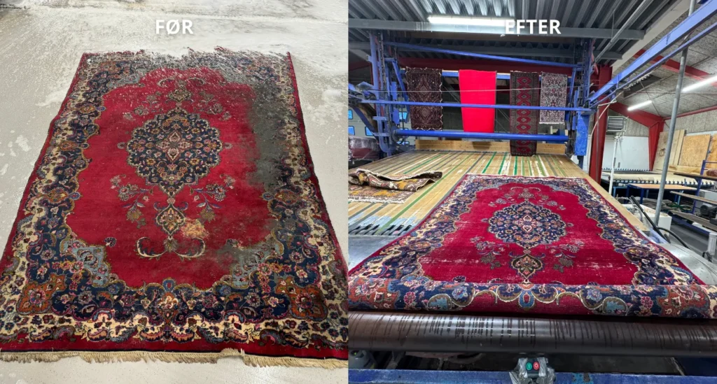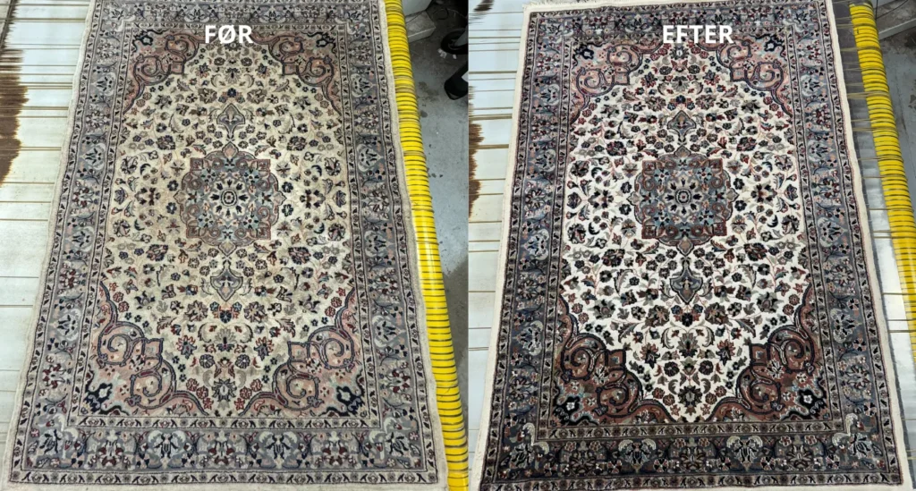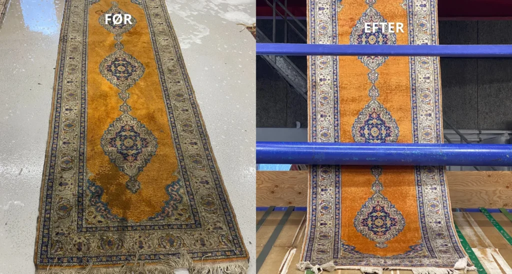 Pakistansk tæppe udsat for vandskade før & efter vask